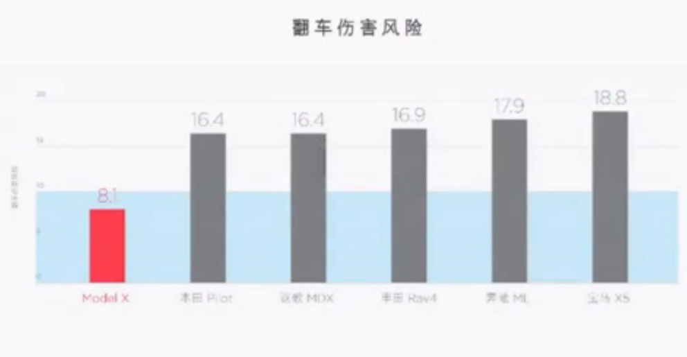 Model X outperforms its competitors in rollover risk test (8.1%), compared with the second best (16.4%), thanks to a low centre of gravity from the battery.